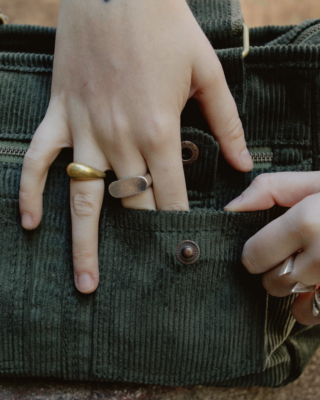 • cierres metálicos YKK y herrajes color bronce